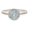 claw set with a round-cut aquamarine, in a border of round brilliant-cut diamonds, the shoulders each set with a row of round brilliant-cut diamonds, to a 18ct white gold shank