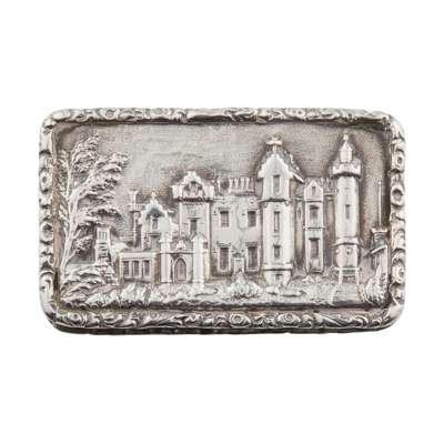 Taylor and Perry, Birmingham 1834 , depicting the view of Abbotsford, of rectangular form, with cast foliate border, vacant cartouche to underside, with gilt grille to interior