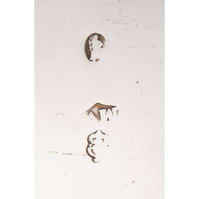 Morris Walsh, circa 1775, of traditional form, punched beaded rim, the legs to the hoof feet with similar punched decoration, the handle of S scroll form