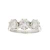 claw set with three round brilliant-cut diamonds, to a plain white metal shank stamped 18ct