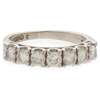 composed of a row of seven claw set round brilliant-cut diamonds, to a plain white metal shank stamped 18CT PLAT