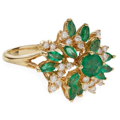 An emerald and diamond set cluster ring