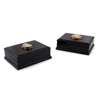 Two mid-19th century ebonised table top playing card boxes