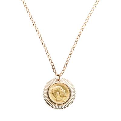 set with a 1906 half sovereign in a detachable 9ct gold mount, to a 9ct gold flattened curb-link chain