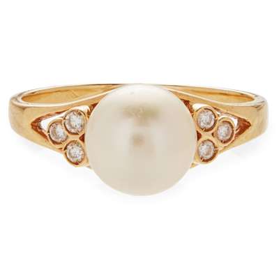 A pearl and diamond set ring