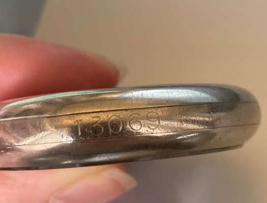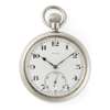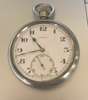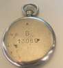 open face, keyless wind, nickel case, round white enamel dial with Arabic numerals in black, sunken small seconds at 6 with Arabic numerals in black, railroad outer seconds track in black, blued steel leaf hands, the caseback with broad arrow and B 13069, the case edge also with 13069, this code indicates this to be a 'back up' watch to a full chronometer and one that would not have been carried on the person of a soldier