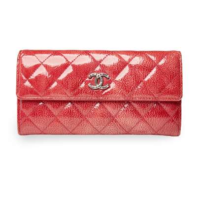 quilted red patent leather, silver-toned hardware, with authenticity card, suede pouch and Chanel box