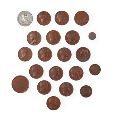 A collection of nineteen early 19th century bronze medallions relating to Napoleon