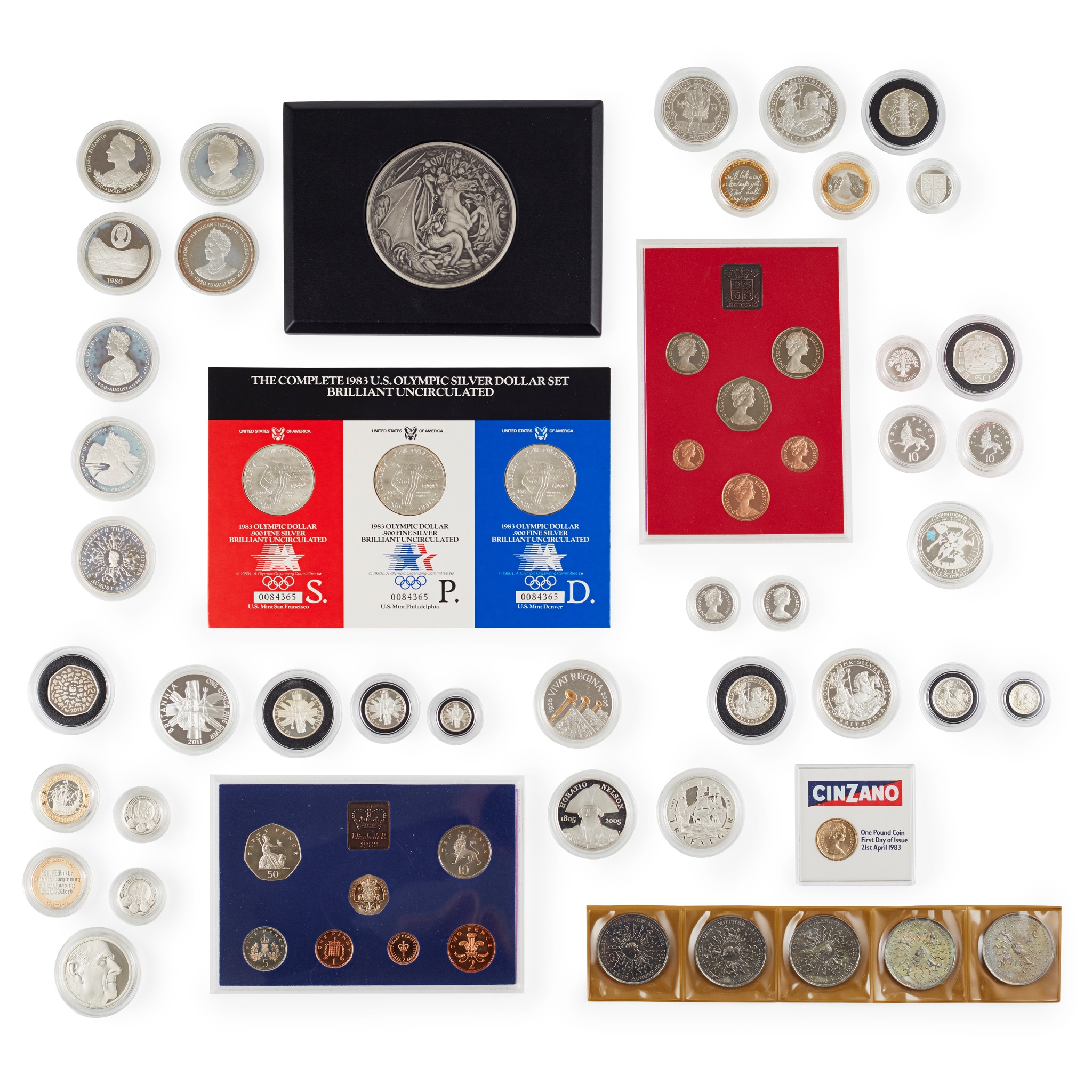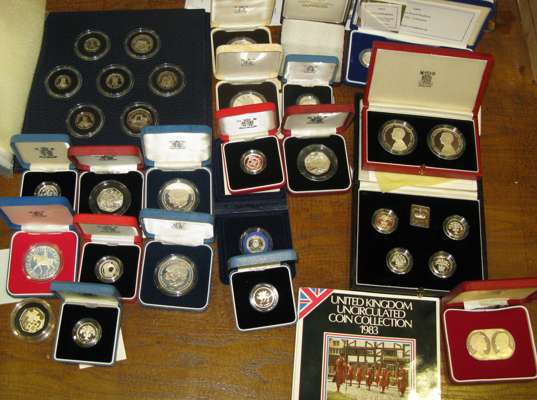 cased, singles and sets, year sets etc. from 5np to crowns and Commonwealth issues and many with certificates approximately 75 and a quantity of base metal commemorative coins