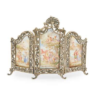 A mid-19th century Austro-Hungarian enamel triptych screen
