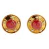 each of circular outline, collet set with a central rhodochrosite cabochon, in a wide border collet set with five pearls, clip fittings