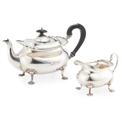 A modern teapot and milk jug