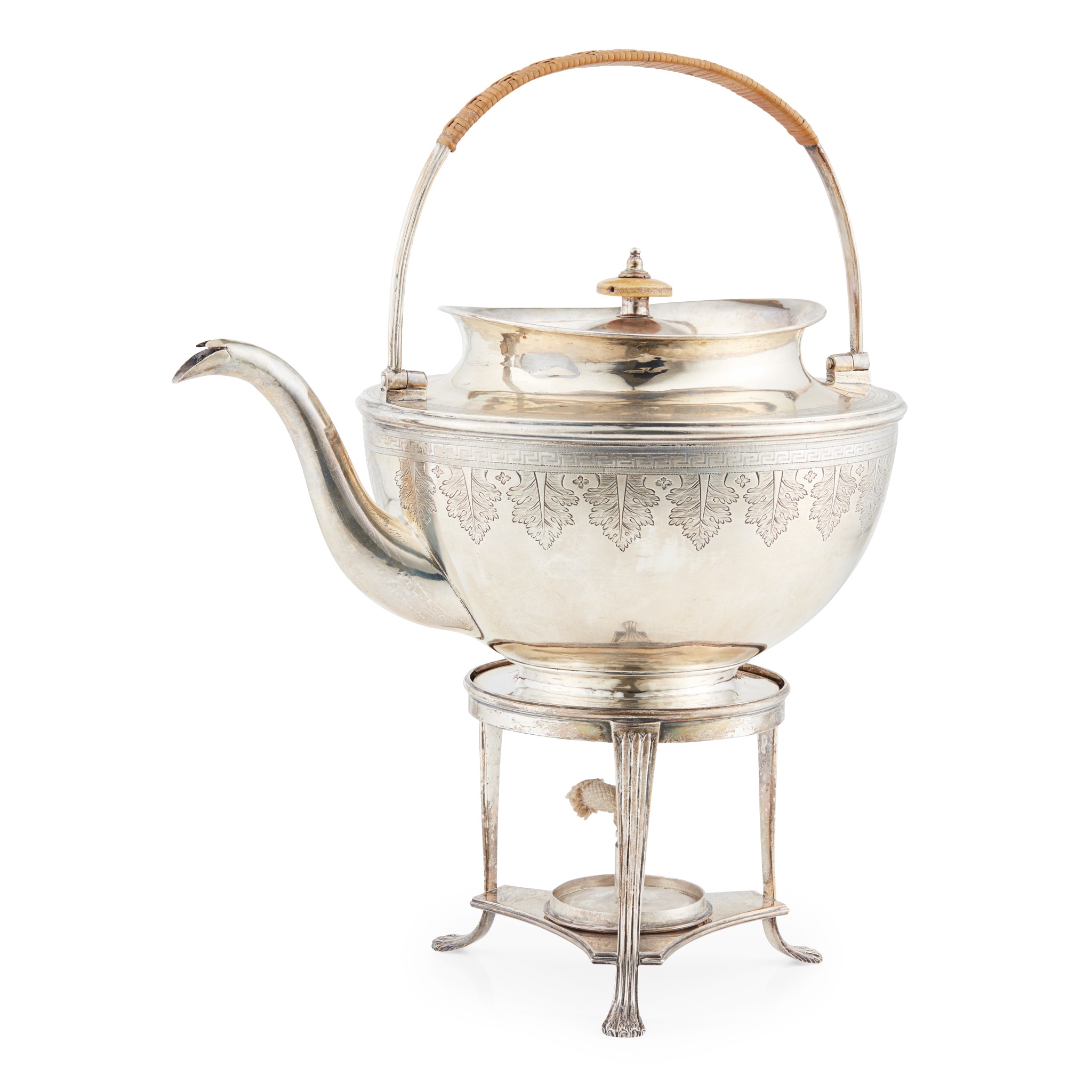 A George III spirit tea kettle on stand Y