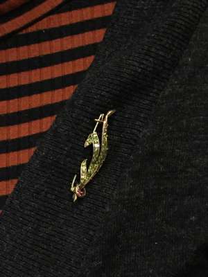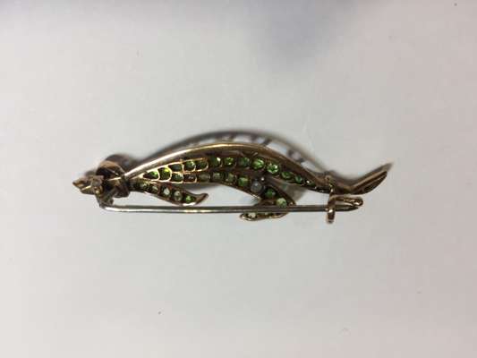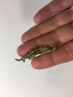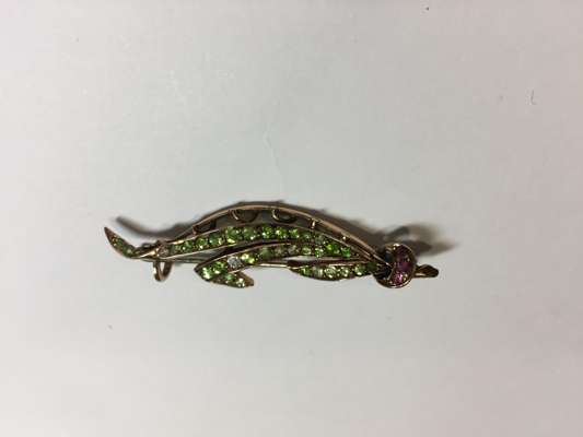 bearing marks for Alexander Romanov, (St Petersburg, 1904-1912), of foliate design, set throughout with Tsavorite and Almandine garnets and two colourless gems, marked to pin loop