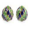 each of domed design, with blue and green 'scaled' enamel detail, to clip fittings, with French marks to clip, stamped 750 Kt18, numbered 1647A