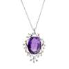 claw set with an oval mixed-cut amethyst, in a stylised surround of graduated round brilliant-cut diamonds, stamped 750, to a trace link chain stamped 750