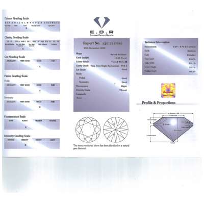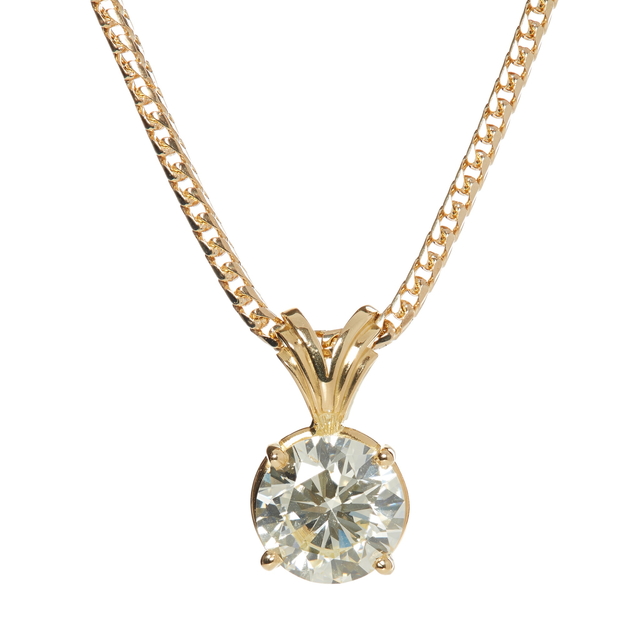 claw set with a single round brilliant-cut diamond, to a 9ct gold snake link chain; together with its original 1940s ring mount, a baguette-cut diamond to each shoulder, indistinctly marked; with accompanying report by European Diamond Reports, dated 20.11.2020, numbered E2012157083, stating that the diamond is 3.24cts, VVS2 clarity, M colour