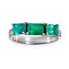 claw set with three graduated rectangular-cut emeralds, to a plain shank, stamped 18k