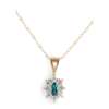 each set with a small round-cut ruby in a border of six small round-cut diamonds, to post and butterfly fittings, indistinctly marked; together with a blue tourmaline and diamond set cluster pendant, stamped 9ct to a trace link chain