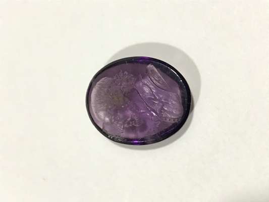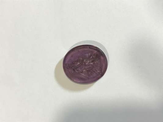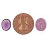 to include; an oval purple glass matrix with profile of Shakespeare; a piece of Shakespeare's Mulberry tree as a disc with profile of Shakespeare and stamped to rear 'Shakespears (sic) wood Sharp Stratford on Avon'; another matrix also glass with standing figure of Shakespeare at a column with a stack of books