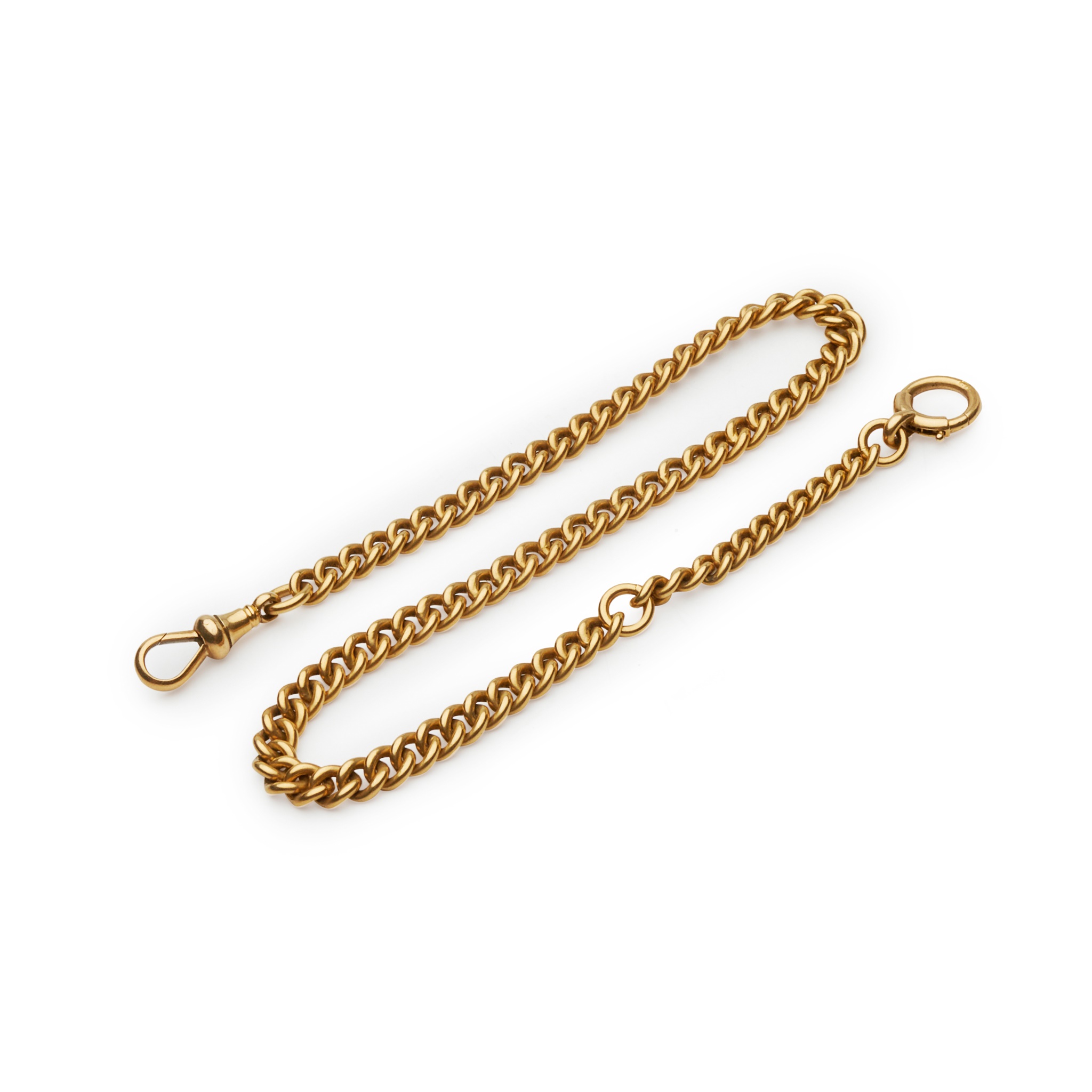 formed of curb links, with a dog-clip clasp and a lobster clasp, marked 18