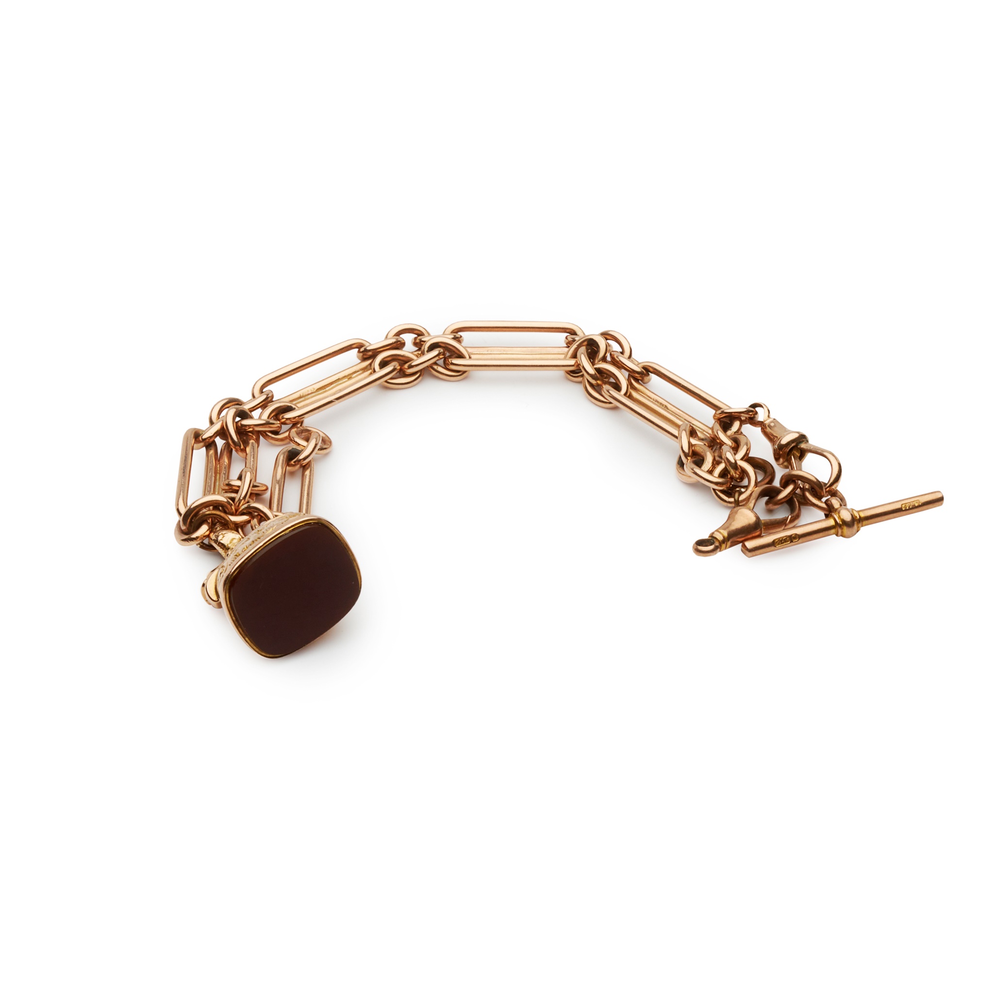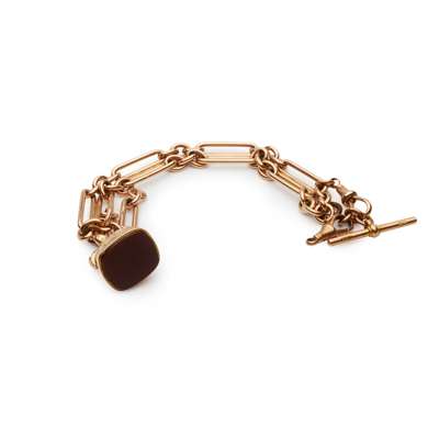 composed of a double row of soldered Albert links, with T-bar suspension and agate set fob