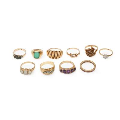 A collection of ten rings