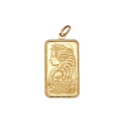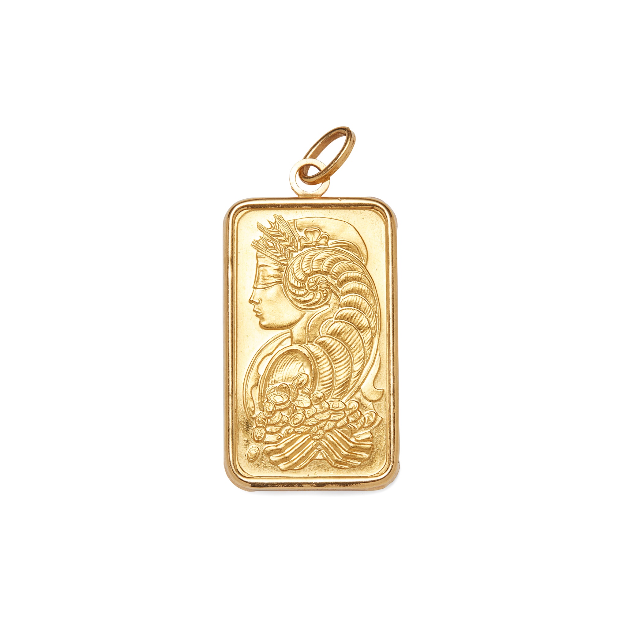 half-ounce 999.9, with Fortuna to the obverse, plain gold mount as a pendant