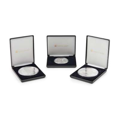 50th Anniversary of the moon landing £25 with certificate 5oz; 2018 silver British 10oz valiant coin, with certificate; The Queen's Beasts £10 proof coin with certificate 10oz