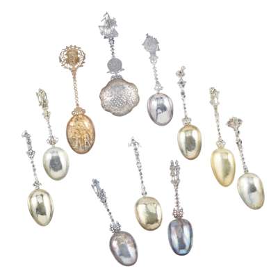 A collection of 19th century silver and silver gilt Dutch fancy spoons