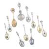 various dates and makers, a variety of cast stems and finials depicting figures, merchants, animals, sailing ships etc., the rear of a number of bowls have inscriptions