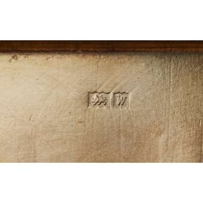 to include a small modern box, with cast foliate borders; together with an oval gilt-metal and enamel patch box; an Austrian table snuff box, the lid with miniature after Boucher, of a couple in a garden scene, with a pierced cover, the sides and base with engraved scrolling foliage; together with a small 19th-century box and cover of rounded oval form and another small snuff box
