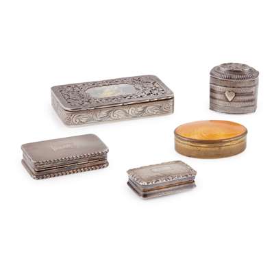 A collection of snuff and patch style boxes