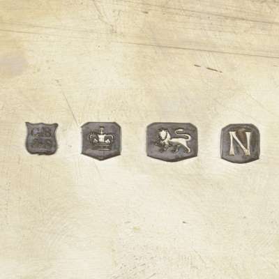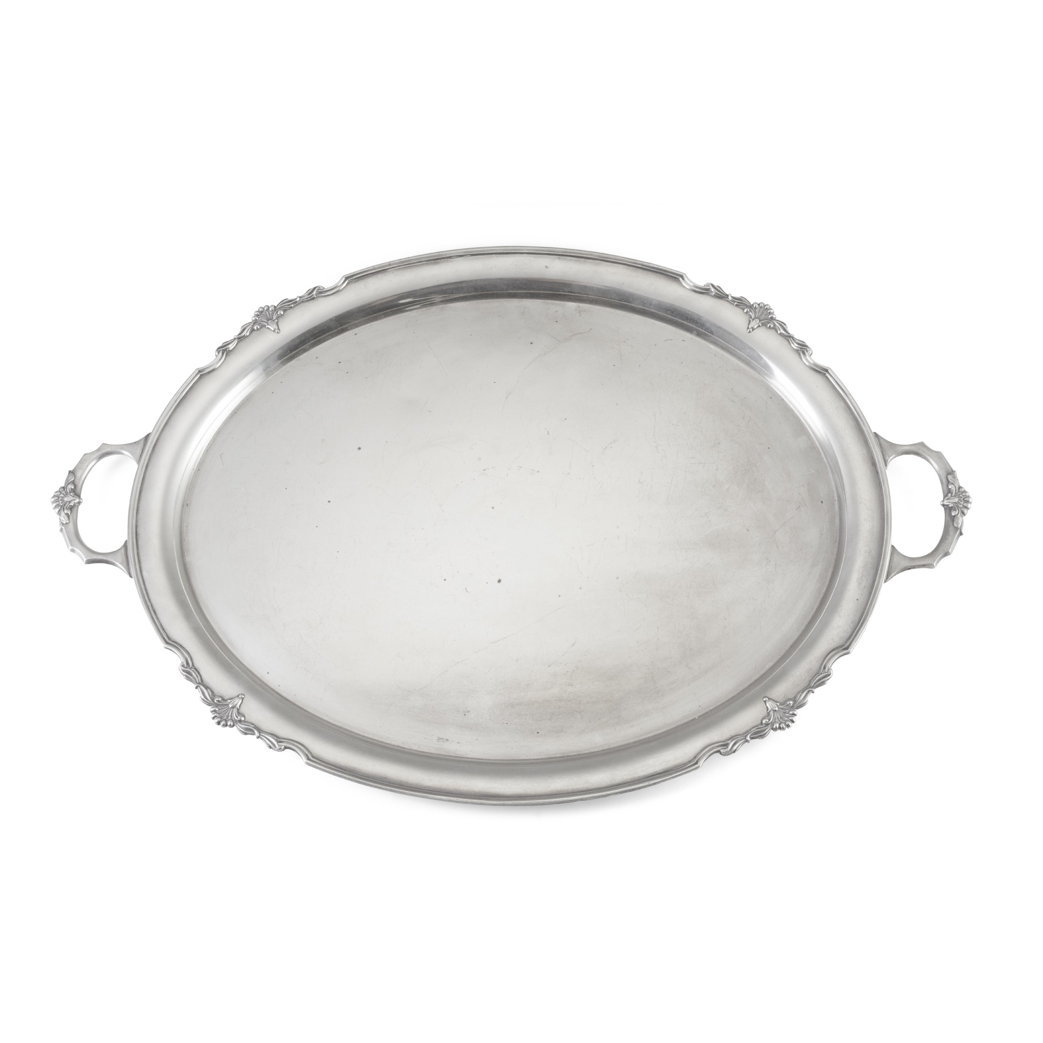 Cooper Brothers & Sons Ltd, Sheffield 1955, of oval outline with raise border with cast shell detail, the handles with similar detail