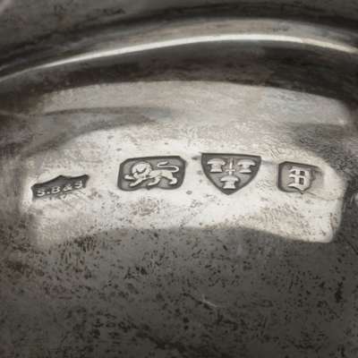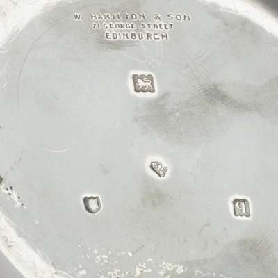 S Blanckensee & Son Ltd Chester, 1934, of rounded rectangular form, with bellied waist, a gadrooned border to the lid, composite angular handle, raised on four ball feet; together with another teapot, Hamilton (of Edinburgh) London 1911, of squat form, engraved monogram to the body and another, Cooper Brothers & Sons Ltd, Sheffield 1915, of demi-fluted oval form
