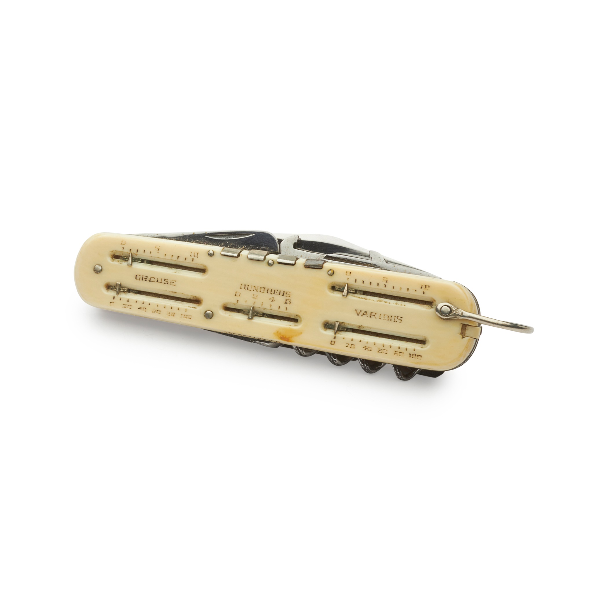 A 1920s ivory pen knife/ game counter, Asprey Y