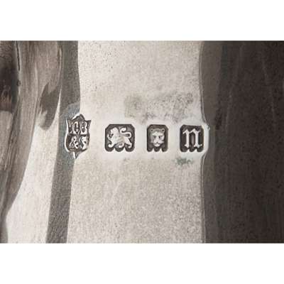 Thomas Bradbury & Sons Ltd, London 1928, of plain tapering form, the curved spout with panelled detail, the domed hinged lid with knopped finial, S scroll handle and raised on a stepped circular foot