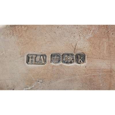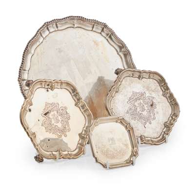 Henry Atkins, Sheffield 1927; together with a pair of card trays, William Hutton & Sons Ltd, London 1898 and another smaller pair of card trays, Goldsmiths and Silversmiths London 1949