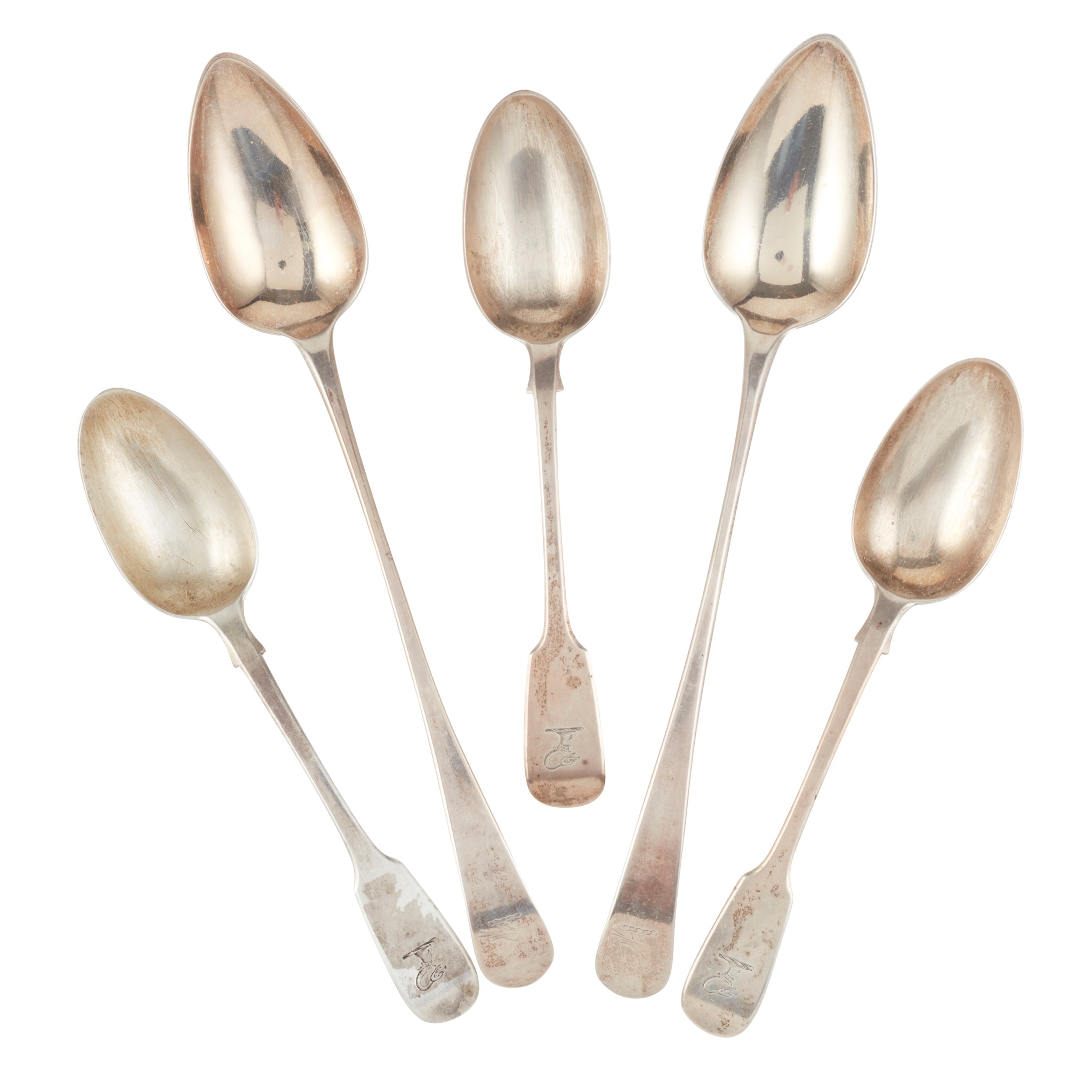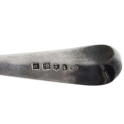 Robert Wilson, Edinburgh 1798, of Old English pattern, engraved crest; together with three Fiddle Pattern tablespoons, engraved crest