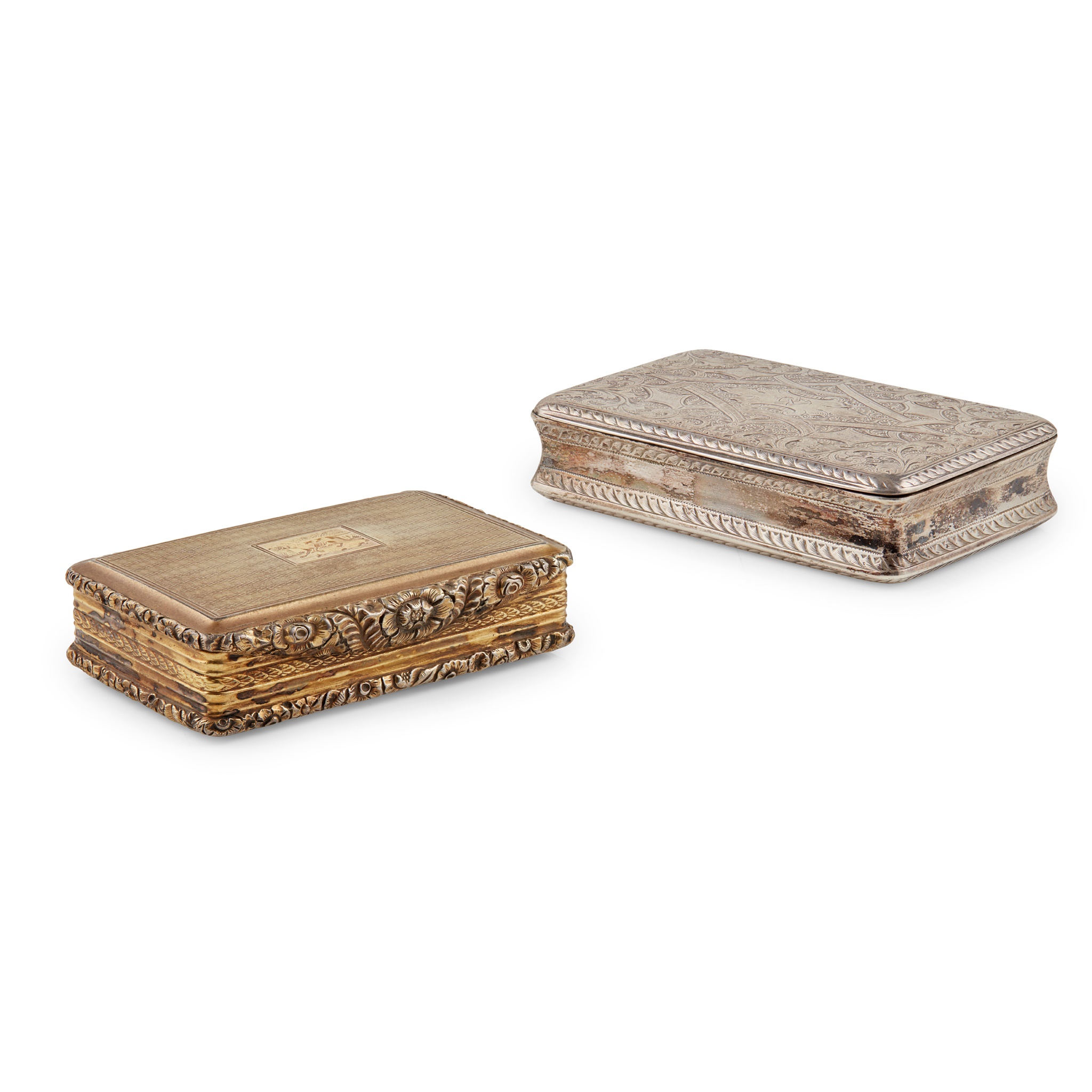 Thomas Pemberton & Robert Mitchell, London 1818, good cast border, engine-turned decoration, small panel to the lid with well-engraved foxhound; together with a George IV snuff box, Thomas Smith, Birmingham 1824, all over engraved decoration