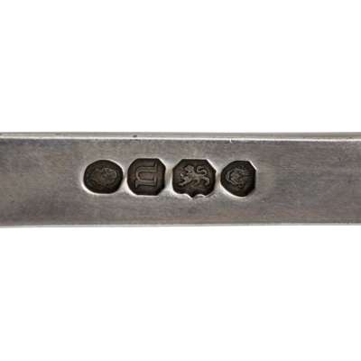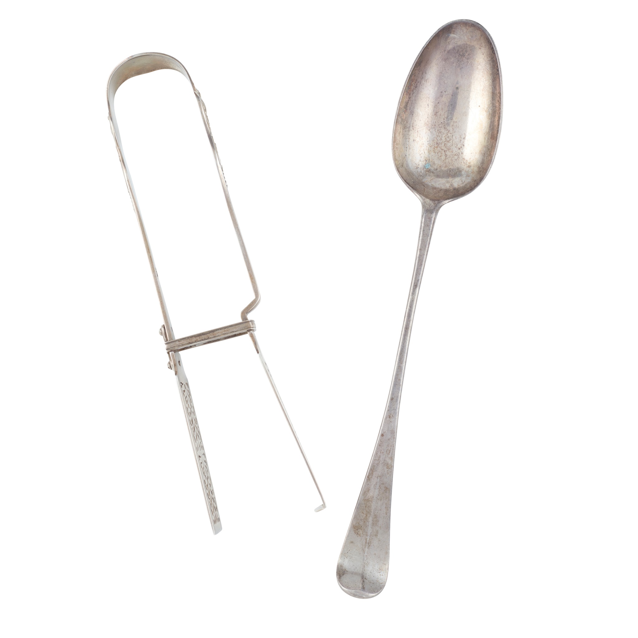 London circa 1730, Hanoverian pattern, engraved crest to the rear; with a pair of asparagus tongs, probably Mary Chawner, London 1835, King's pattern, engraved stag crest
