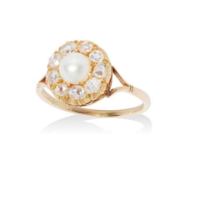 A pearl and diamond set cluster ring