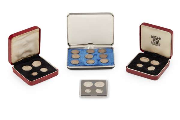 1905 S.3985 EF+; together with two George V Maundy sets 1918S.4016, UNC and 1925 S.4027 UNC; and nine Two Anna coins 1841