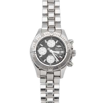 Super Ocean model A13340, stainless steel case, automatic movement, signed round black dial with applied stainless steel-edged lume baton hour markers, sunken subsidiary dials at 12, 6 and 9 for 30 minute register, 12 hour register and small seconds respectively, date and date apertures at 3, outer seconds track in white, decimal scale to the rehaut in white, stainless steel lume-filled sword hands, stainless steel centre seconds hand with red terminal and Breitling logo counterbalance, uni-directional stainless steel bezel with count up scale, lume pip at 60, crown with Breitling logo flanked by twin circular screw-down push-buttons, with model and serial number to the caseback, on a stainless steel bracelet strap with S070 to two links, with a signed Breitling folding clasp, in box, with outer box, with papers and booklets
