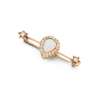 set with a pear-shaped cabochon opal, in a border of round-cut diamonds, each terminal set with a small round-cut diamond, stamped 15