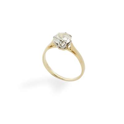claw-set with a round brilliant-cut diamond, to a plain band, stamped 18CT
