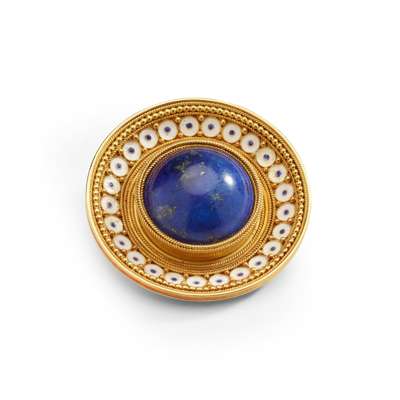 A late 19th Century lapis lazuli and enamel brooch, by Robert Phillips