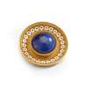 of circular outline, collet-set with a lapis lazuli cabochon in a beaded border with white enamel detail, unmarked