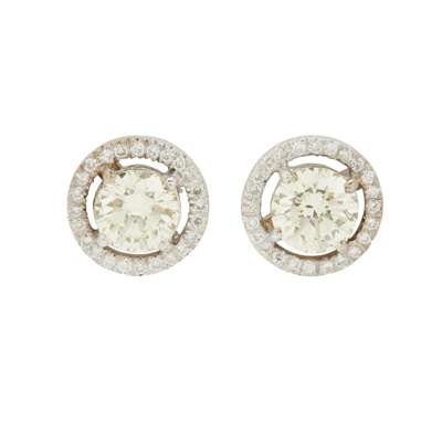 each claw-set with a round brilliant-cut diamond, in a halo border of smaller round brilliant-cut diamonds, to post and butterfly fittings, unmarked