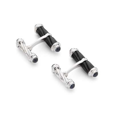 A pair of onyx and sapphire cufflinks, by Deakin & Francis